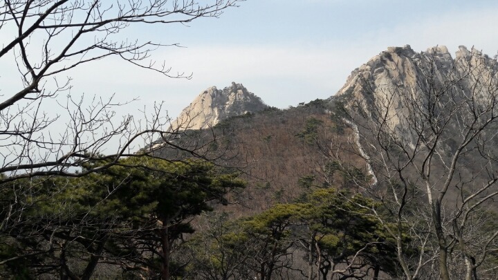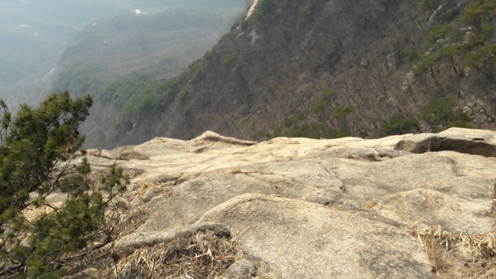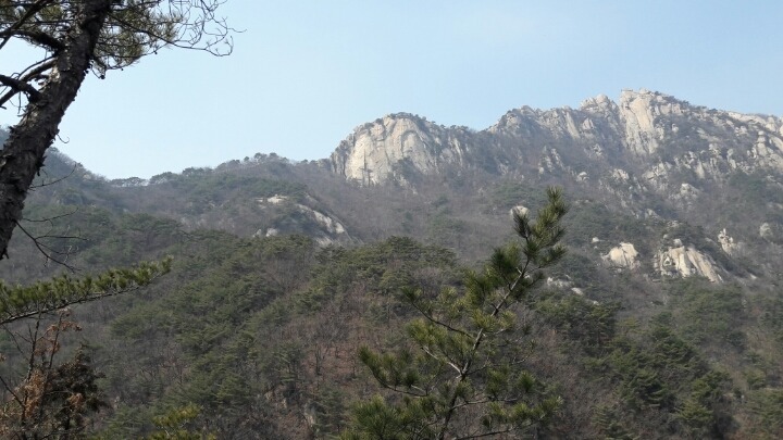 골짜기를 오르다가 뒤돌아본 사진이다.