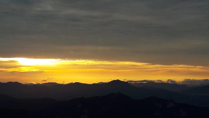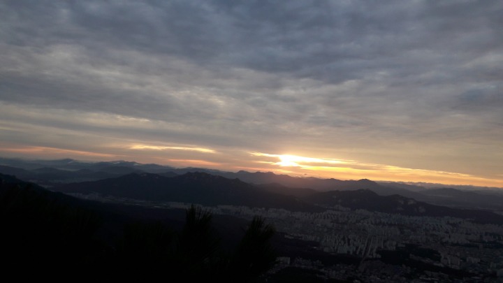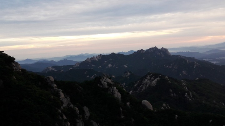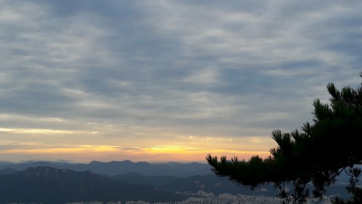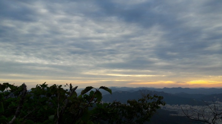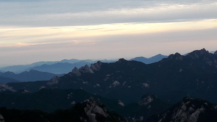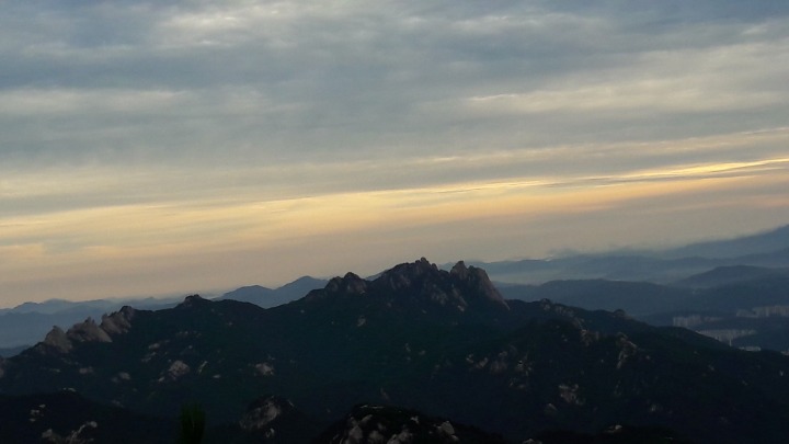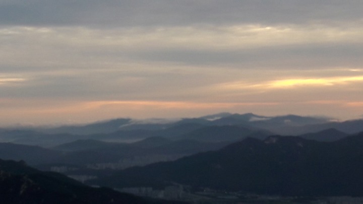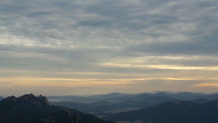 산 그리메 사이사이 쌓인 구름 빛이 멋저부러!