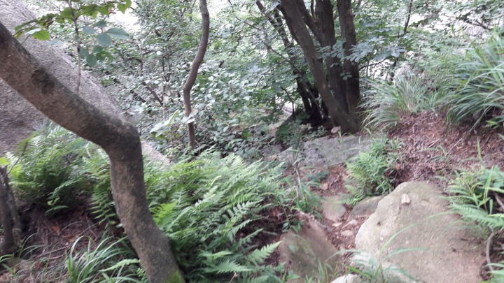 왼쪽으로 희미한 길을 따라 급경사를 내려왔다.