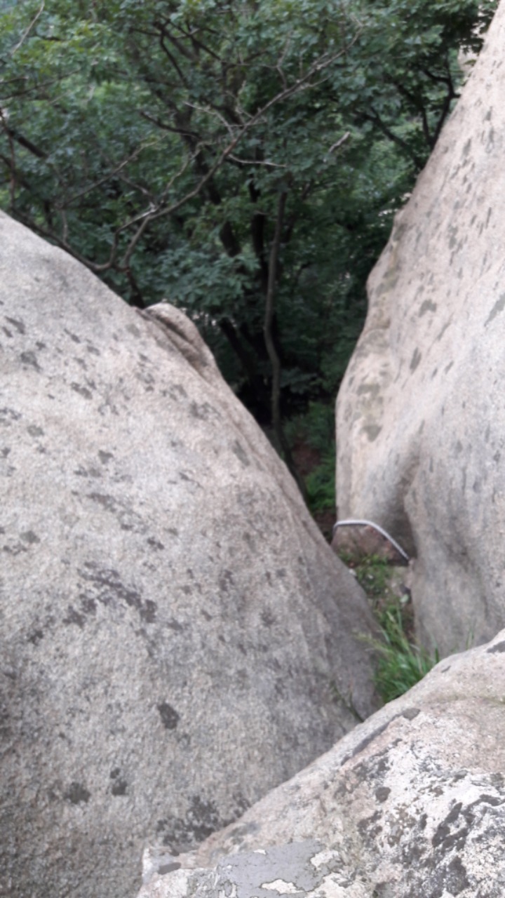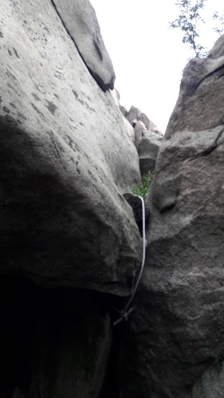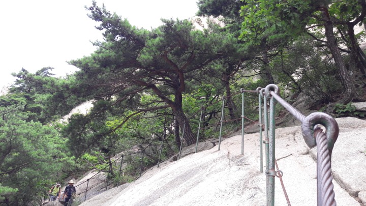 발 디딜 턱이 마땅치 않고 밧줄 걸려있는 바위는
