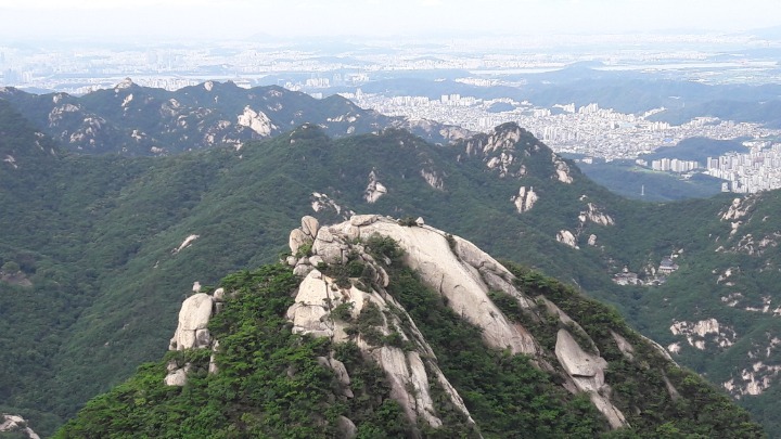만경대 우측에서 인수 머리 꽁지를 잡았다.