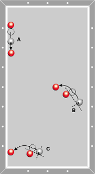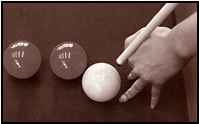 Masse치기 작성자골드문트|작성시간08.01.25|조회수2,877 목록 댓글 0 글자크기 작게가 글자크기 크게가 [ 마세 ( Masse ) ] 일반적인 타구법으로는 득점이 불가능한 경우나 목적구들을 모아치기 위해 큐를 세워서 치는 타구법을 마세라고 하며, 세워치기 또는 찍어치기라고도 한다. 즉, 수구에 강한 비틀기를 걸어 수구를 커브시켜 득점하는 방법이다. 마세는 당구에서 최고의 기술로 인정받고 있으며 당구의 꽃이라고도 한다. [ 자세 ]가능한 한 당구대 가까이에 서서 양발을 적당히 벌리고 한쪽 발에만 ( 오른손잡이는 왼발 ) 체중을 약간 실어주고 숙이는 듯한 자세를 취한다.위에서 공을 내려다 보듯이 얼굴은 큐보다 앞쪽으로 위치해야 하고 큐는 스치듯이 당겨 붙인다. [ 브리지 ]새끼, 약지, 중지 손가락은 테이블 바닥에 삼각 받침대처럼 고정시키며 검 지 손가락은 수구에 닿지 않도록 둘째 마디를 기준으로하여 안쪽으로 구부린다. 그리고 엄지손가락은 큐를 지탱할 수 있도록 해야 한다. [ 그립 ]엄지손가락과 중지, 검지 세손가락 끝으로 가볍게친다.큐를 움직일때는 팔 전체를 사용하지 않고 손목만으로 자유자재로 부드럽게 움직일 수있어야 한다. [ 스트록 ]마세에서 가정 중요한 부분으로 힘을 완전히 뺀 상태에서 큐의 무게를 느끼며 스트록한다. 마치 닭이 모이를 쪼듯이 가볍고 빠르게 찍어준다. [ 겨냥법 ]제1목적구의 수구가 근접해 있어 커브를 그리기 전에 제1목적구에 맞고 곧이어 커브를 그리며 제2목적구에 맞히는 경우이다.수구와 제1목적구가 만나는 선과 수구의 중심을 연결한 선상에 당점이 위치하고 당점을 확인하여 부드럽고 경쾌하게 찍어준다. [ 기본 형태 ]A : 좌.우 비틀림은 없고 수구의 역회전만을 이용한 마세 샷이다. B : 수구와 제1목적구가 많이 떨어진 경우다.큐의 각도와 수구의 당점에 유념하여 많은 연습을 하여야 한다. C : 제1목적구와 수구가 가까이 근접해 있는 형태로 연습하기에 아주 좋은형태이다. 출처: http://sportal.sbs.co.kr/billiard/ 다음검색 현재 게시글 추가 기능 열기 북마크 공유하기 신고 센터로 신고 댓글 댓글 0 댓글쓰기 답글쓰기 댓글 리스트