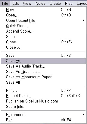 일반적으로 Ctrl + S 를 누르면, 시벨리우스 파일로 저장됩니다.