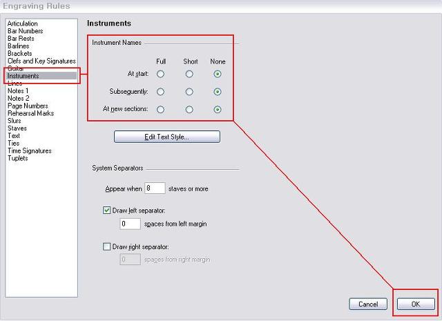 그곳에서 Full (악기이름), short (줄임말), none (안 보이도록) 중에, Full 을 선택합니다.
