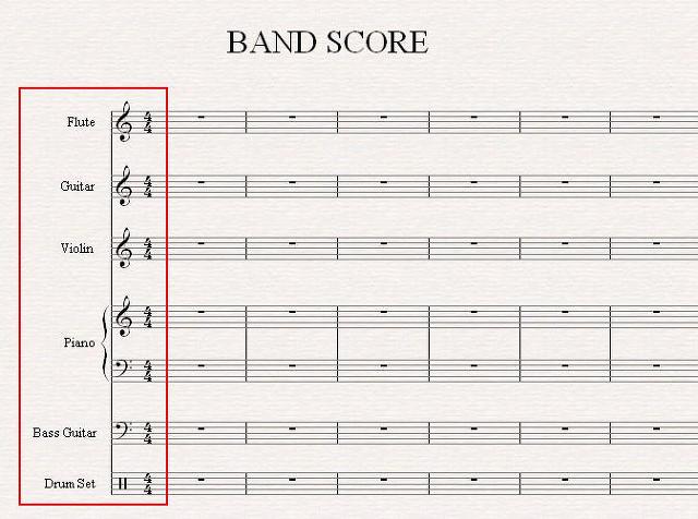 일단, 아래와 같이 다양한 악기 보표들을 꺼내어 작업을 하고 있다고 상상해보세요.