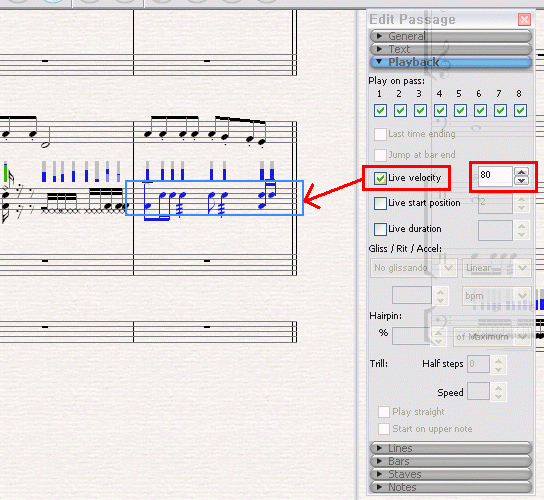 (1) 이미 벨로시티가 일정치 않게 Live로 녹음된 악보이거나, 미디 악기로 연주된 악보의 경우는