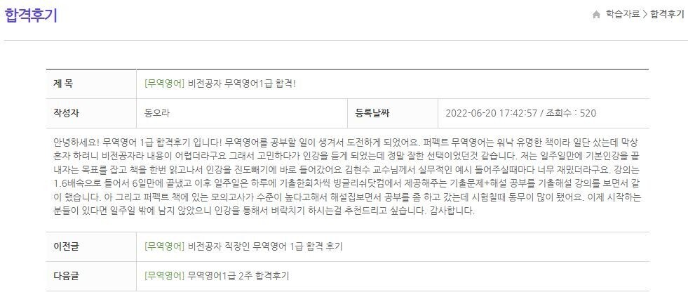 안녕하세요! 무역영어 1급 합격후기 입니다!