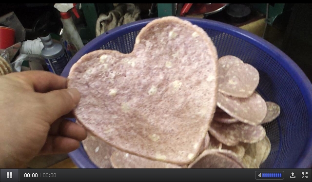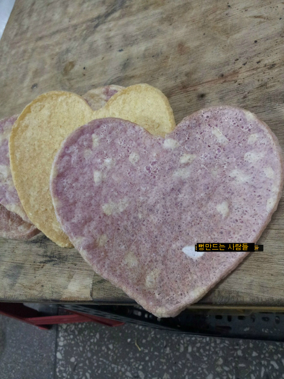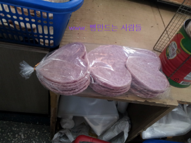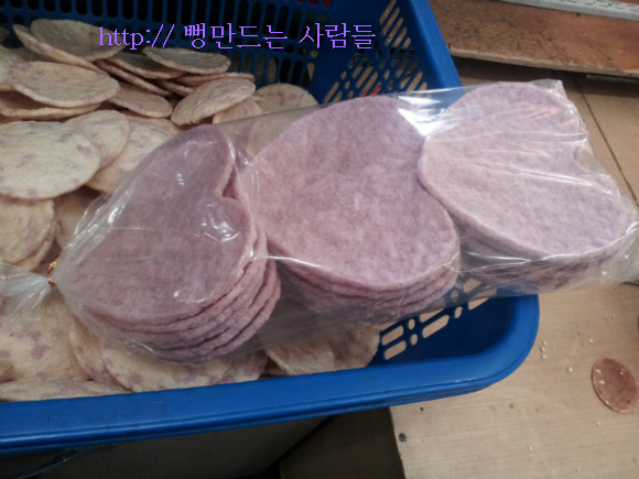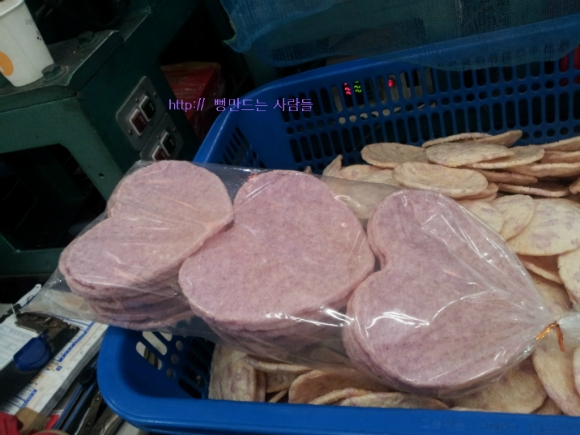 자색 고구마쌀로 튀겨진 하트뻥튀기 기계입니다,