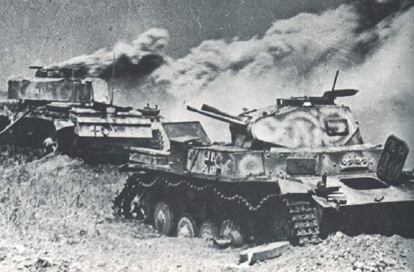 (쿠르스크 전투에서 불타는 독일 전차들)