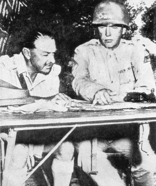 북아프리카 전역에서 작전 협의 중인 해롤드 알렉산더 장군과 패튼 장군)