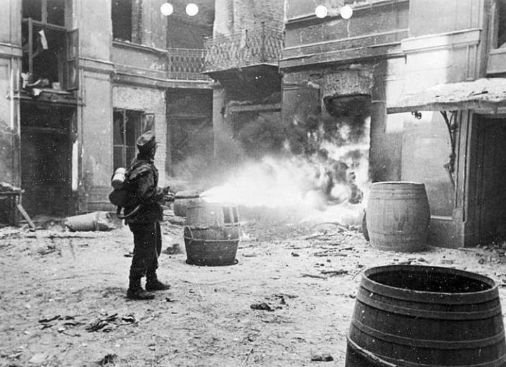 (바르샤바 저항군을 소탕하기 위해 화염 방사기를 사용하는 독일군 진압부대)