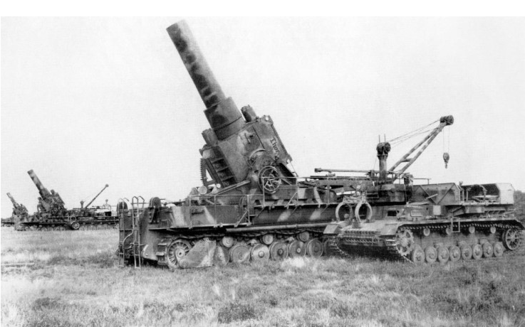 (나치 독일의 전설의 괴물 자주포 - 600mm 칼 자주 박격포, 옆에 4호탱크 차체를 개조한 포탄 운반 탱크도 보입니다.)