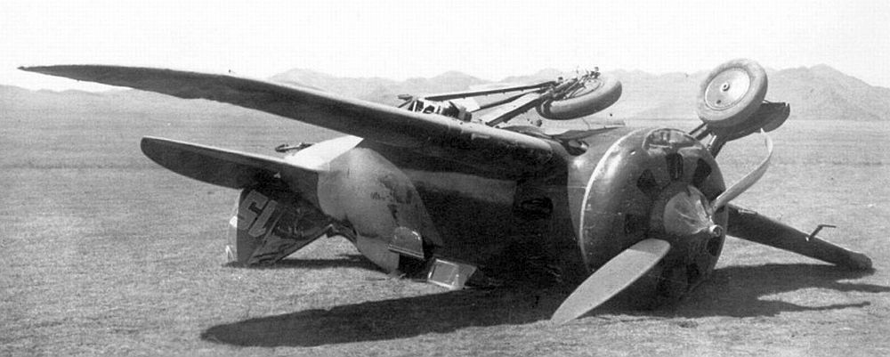 (추락한 2차대전 초기 소련 주력기 폴리카르포프 I-16의 추락한 모습. 이 둔하게 생긴