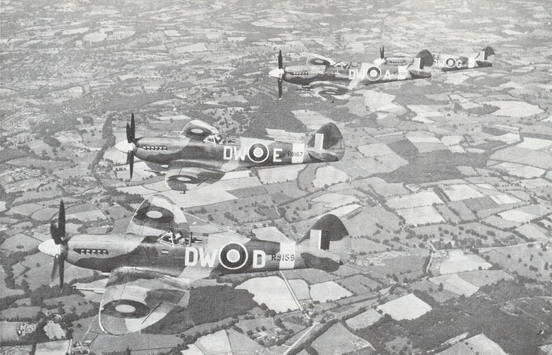 1944년 엄청난 스피드가 가능한 스핏파이어 Mk. XIV형이 있었지만 이미 설명했듯이 짧은 항속 거리로 독일 공습에 나서는 폭격기 편대들을 호위하는 임무는 뒤늦게 전쟁에 투입된 P-51 무스탕의 몫이었습니다. 기껏해야 스핏파이어와 허리케인은 영불해 근처에서만 활동할 뿐이었습니다. 하지만 영국 본토에서 스핏파이어가 해야 할 임무는 따로 있었습니다. 바로 V-1 미사일을 막아내는 것이었는데 약 300기의 V-1을 공중에서 격추시키는 활약을 하였습니다. 또한 노르망디 상륙작전(1944년 6월)이 가까와오자 부지런히 프랑스 해안 지역으로 날아가서 고공 정찰 임무로 사전에 많은 정보를 수집하는데 큰 공헌을 하게 됩니다.