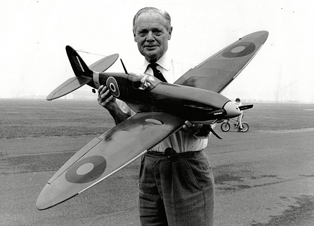 (1982년 말년에 더글라스 베이더 예비역 중령. 그는 무선조종 스핏파이이 모형기를