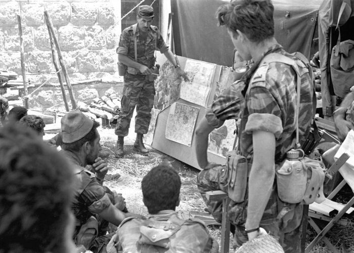 (골란 고원 전투 개시 직전에 브리핑을 받고 있는 이스라엘 골라니 보병 여단 병사들)