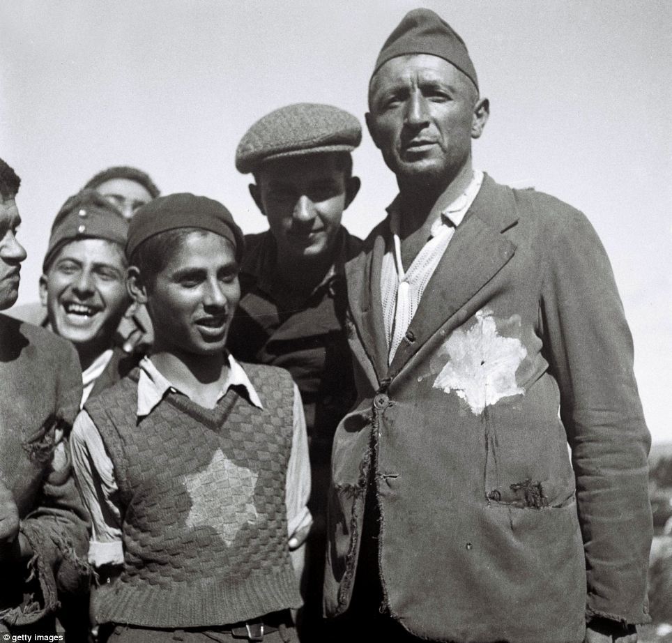 (팔레스타인에 막 도착한 유태인 홀로코스트 생존자들, 그들의 옷에 뜯겨진 "다윗의 별"자국을