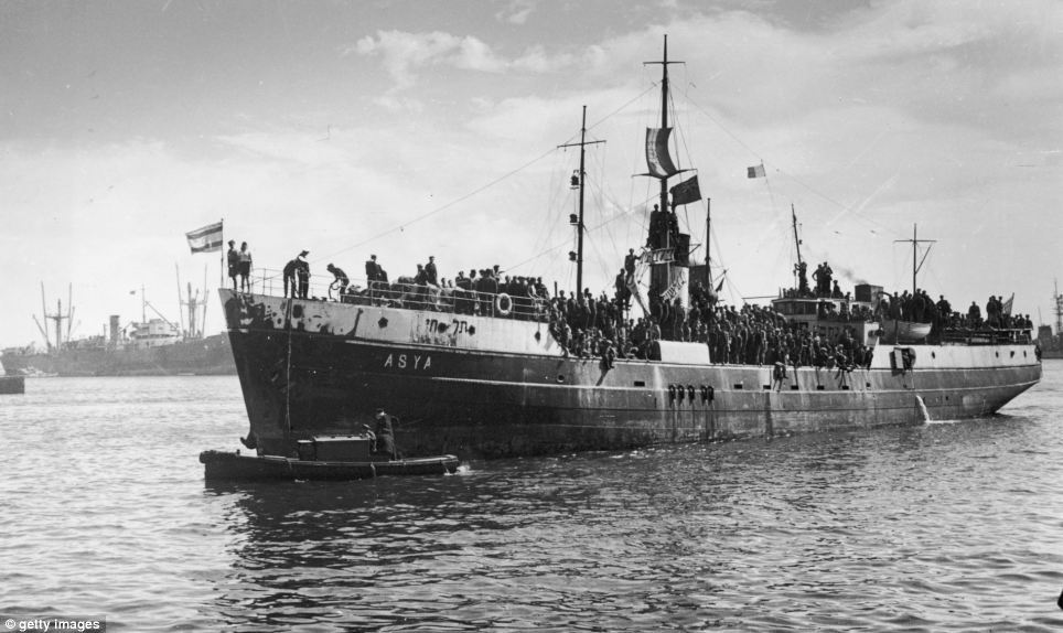 (유태인 이주민들을 배에 가득 싩고 팔레스타인에 막 도착한 화물선)