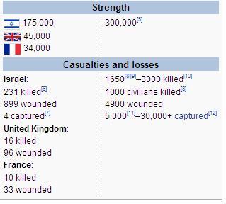 이런 영-프 두나라를 믿고 전쟁에 뛰어들어 야심을 불태웠던 이스라엘은 가장 많은 사상자를 내고도 다시 원위치로 돌아가는 유태인답지 않는 믿지는 장사를 하게 되었습니다.