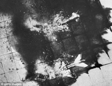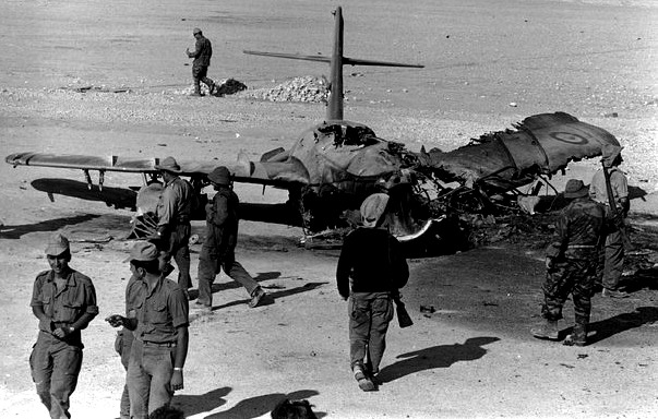 (이스라엘 공군의 기습 공격에 파괴된 이집트 미그-17 전투기)