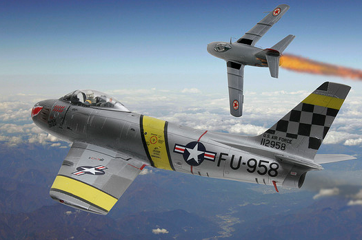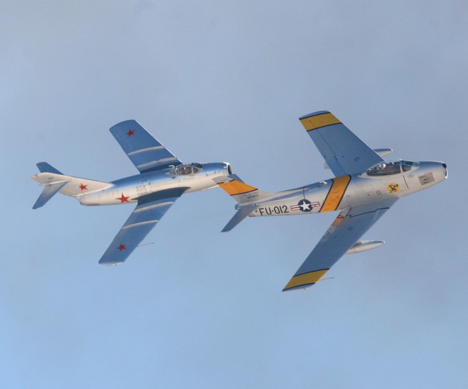 (근래에 한 에어쇼에서 나란히 비행 중인 F-86 세이버와 미그-15)