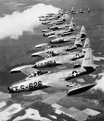 (1자익을 적용한 F-84 썬더제트 전투기 편대, 후퇴익을 선택하지 않고