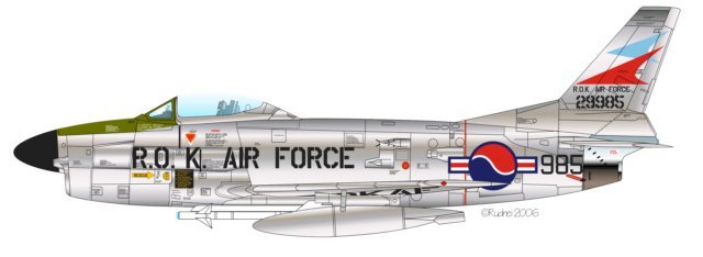 반면 F-86F는 F-4, F-5가 도입된 이후로도 지상공격기로 80년대까지 꾸준히 쓰이다 서서히 일선에서 물러났습니다. 그러나 북한의 미그-15, 17과 유사한 비행특성을 가지고 있다 보니 가상적기로는 쓸만했고, 그래서 90년도까지 소수가 운용되다가 퇴역했습니다.