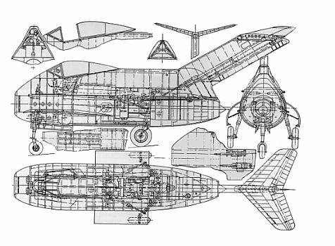 (포케불프 Ta 183 도면, 나치는 이 차세대 제트 전투기를 풍속 시험용 모형까지