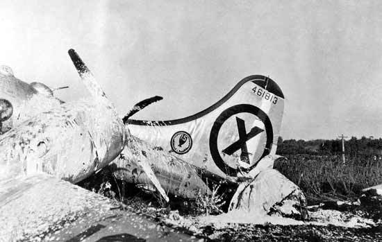 (한국 전쟁 중에 미그-15에 격추된 미공군 91 폭격 비행단 소속 B-29 폭격기의 잔해)