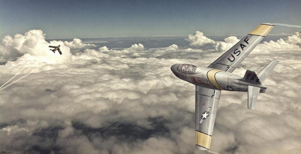 1950년 6월 25일에 한국 전쟁이 발발하고 한반도 상공에 등장한 미국 공군과 북한 공군(사실 북한군 조종상뿐만 아니라 소련에서 파견한 조종사들로 구성됨. 후에는 중공 공군 조종사들도 파견됨.)간에 공중전은 초반에 미공군이 자랑하는 2차대전 인증 최강 프롭 전투기 P-51 무스탕이나 1자형 주익의 제트 전투기 F-80 슈팅스타가 압도적으로 북한군 야크 프롭 전투기들에게 우세한 위치를 점하였고, 당연히 제공권은 미공군에게 돌아갔습니다.