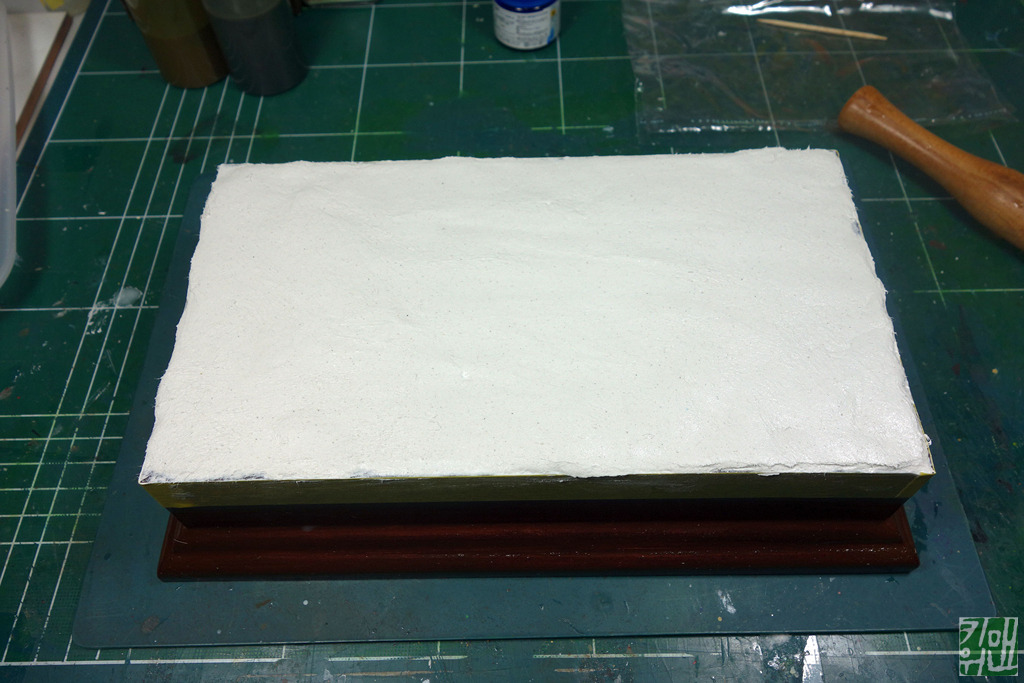 기본 도색 건조하는 동안 베이스 손 봐줍니다.