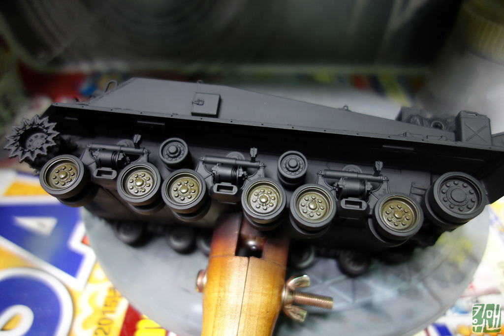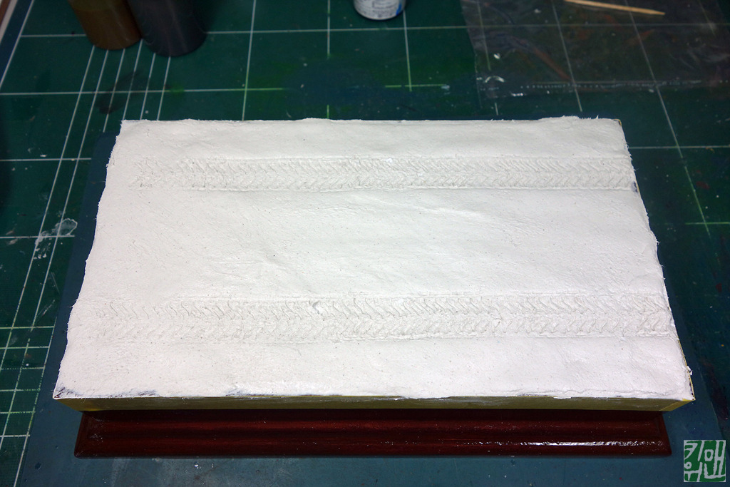 키트에 포함 된 궤도로 궤도 자국을 찍어 줍니다. 며칠 건조 시킨후 도색등 작업 해줍니다.