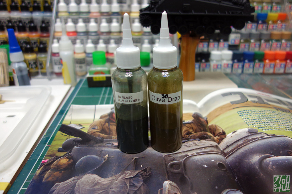 미군 전차의 기본 색인 올리브드랍과 어두운 위장 무늬는 블랙그린 컬러로 정했습니다.