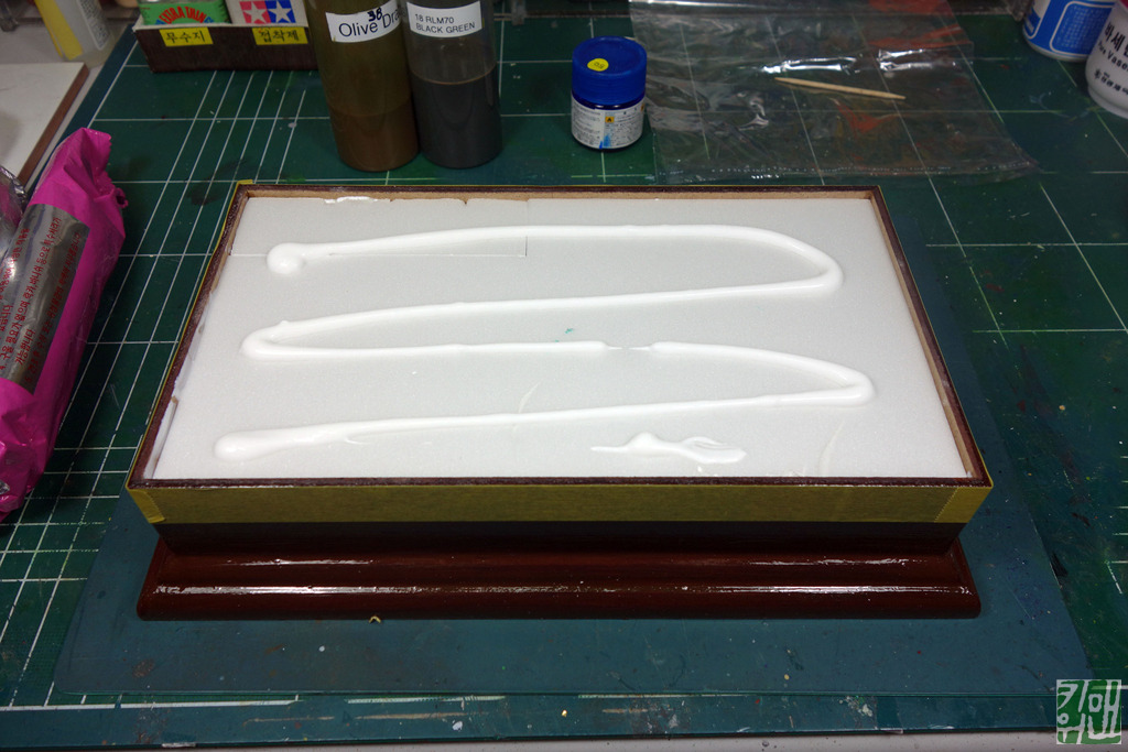 너무 깊어서 우드락을 잘라 채워 넣었습니다. 물론 목공 접착제로 고정입니다.