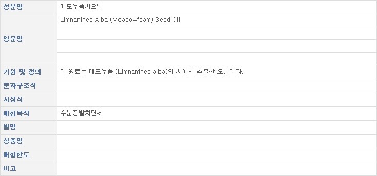 화장품 성분 표준 정보 958 - 메도우폼씨오일 작성자바람소리|작성시간11.11.12|조회수146 목록 댓글 0 글자크기 작게가 글자크기 크게가 메도우폼씨오일 다음검색 현재 게시글 추가 기능 열기 북마크 공유하기 신고 센터로 신고 댓글 댓글 0 댓글쓰기 답글쓰기 댓글 리스트
