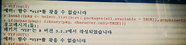 에러 : 함수 "vif" 를 찾을 수 없습니다.