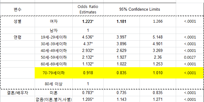 분석방법은 로지스틱 회귀분석을 이용하였습니다.