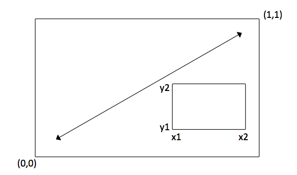 이 그래프가 어떻게 만들어졌는지 이해하기 위해서는 전체 그래프의 왼쪽-아래코너를 (0,0)으로 생각하고 오른쪽-위를 (1,1)로 생각하자. 그림 3-19를 보면 이해에 도움이 될 것이다. fig=인수의 형식은 c(x1,x2,y1,y2) 형태의 숫자 벡터이다. 그림 3.19 LIST 3.4의 두번째 줄을 보면 fig=인수는 scatter plot 그래프를 화면 왼쪽 아래를 기준으로 x축위치는 0에서 0.8, y축위치도 0에서 0.8로 지정한다. 위쪽의 boxplot은 가로 위치는 0에서 0.8이고 세로 위치는 0.55에서 1이다. 오른쪽의 boxplot은 x축의 위치는 0.65에서 1이고 y축에서의 위치는 0에서 0.8이다. 그림 3.18을 그릴때 위쪽의 boxplt을 그릴때 0.8 대신 0.55를 사용한 이유는 boxplot이 scatterplot에 좀더 가깝게 하기 위해서이다. 마찬가지로 오른쪽 boxplot을 그릴떄에도 0.8이 아닌 0.65를 사용했다. 올바른 위치를 얻기 위해서는 여러번 숫자를 바꿔가며 실험해보라