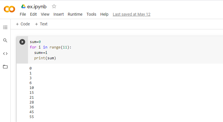 Google Colab으로 Python 작성자안재형|작성시간21.05.14|조회수286 목록 댓글 1 글자크기 작게가 글자크기 크게가 Google Colab (Python 설치할 필요 없습니다)https://colab.research.google.com 이런 식으로 Python 코드를 작성하고 play 버튼을 누르면 결과가 출력됩니다. 다음검색 현재 게시글 추가 기능 열기 북마크 공유하기 신고 센터로 신고 댓글 댓글 1 댓글쓰기 답글쓰기 댓글 리스트 작성자강성찬 | 작성시간 21.05.14 감사합니다 ^^ 댓글 전체보기