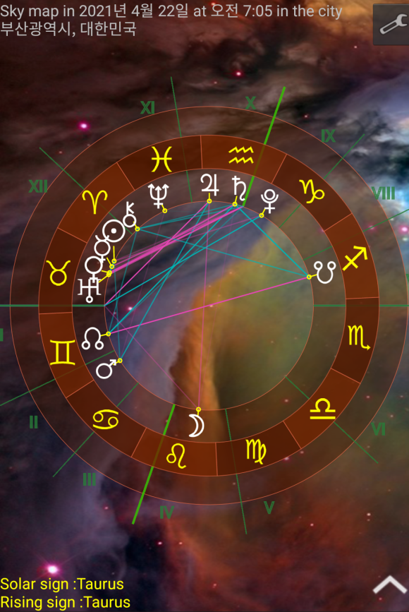 아름다움의 금성이 혁명의 천왕성과 컨정션(conjunction)하니 획기으로 나를 표현할 것이고 육체의 즐거움도 지금과 다른 형태로 행복을 찾을 것이니 기대해볼만하다.