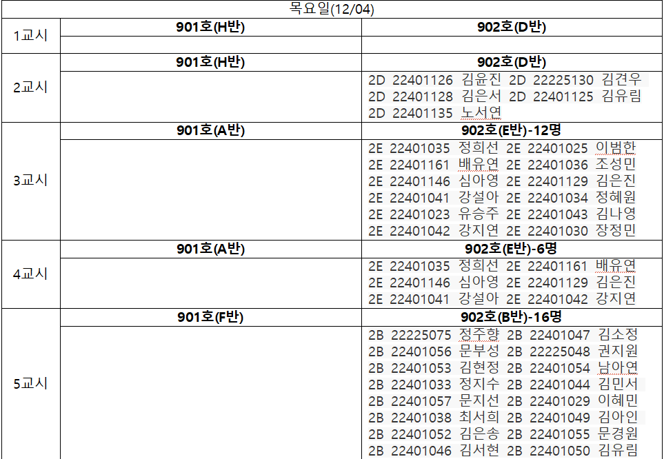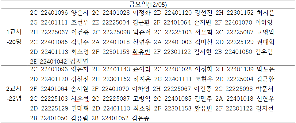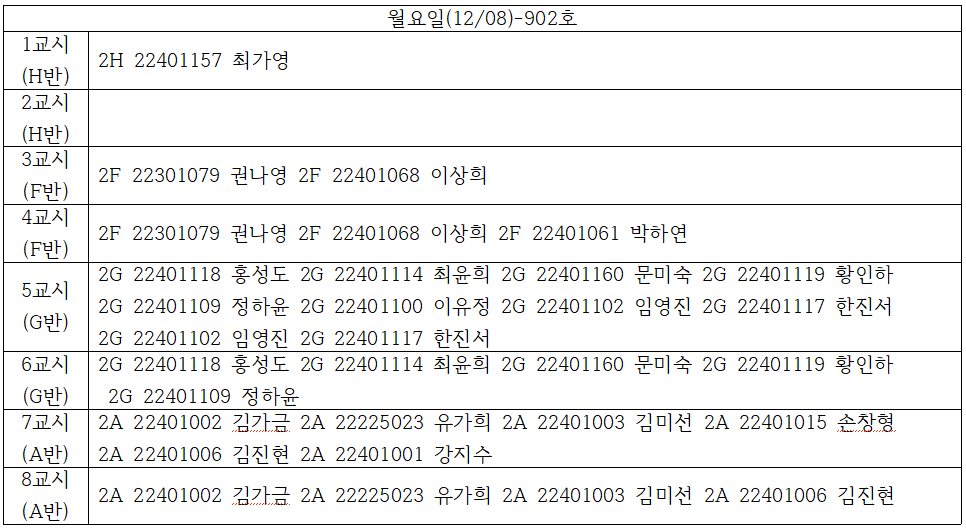 12/4~12/08 자율실습 추가 신청 및 취소 게시판입니다.