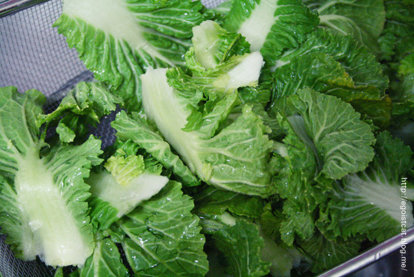 깨끗히 씻은 봄동은 채반에 받혀 물기를 빼서 준비해주세요~