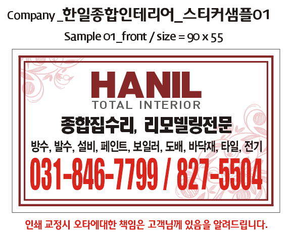 한일종합인테리어 스티커 샘플 시안을 확인하세요 / / [비즈카드코리아] 스티커디자인제작,스티커인쇄,스티커싼곳,명함7000원 작성시간12.03.21|조회수41 목록 댓글 0 글자크기 작게가 글자크기 크게가 한일종합인테리어 스티커 샘플 시안을 확인하세요 / / [비즈카드코리아] 스티커디자인제작,스티커인쇄,스티커싼곳,명함7000원 다음검색 현재 게시글 추가 기능 열기 북마크 신고 센터로 신고 댓글 댓글 0 댓글쓰기 답글쓰기 댓글 리스트