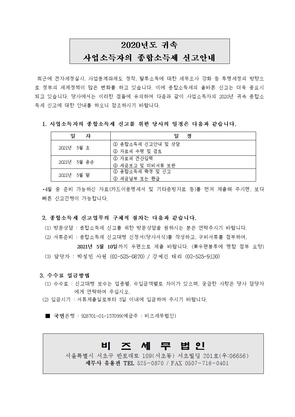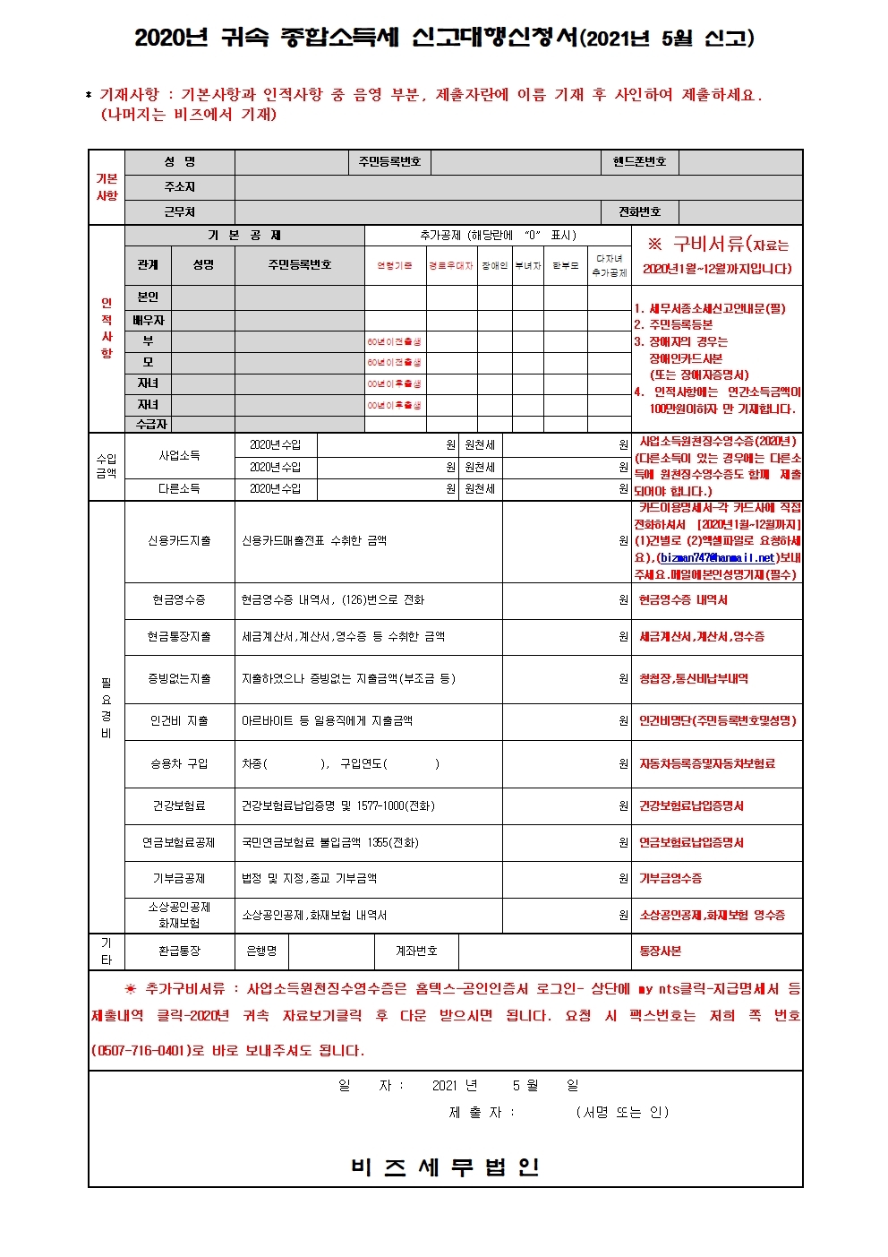 2020년 귀속 종합소득세 신고안내(2021년 5월) (첨부서류 참조) 작성자비즈맨 2|작성시간21.04.08|조회수981 목록 댓글 0 글자크기 작게가 글자크기 크게가 2020년귀속 종합소득세 확정신고안내문.hwp64.00KB2020년귀속 종합소득세_신고대행신청서.hwp80.00KB 첨부파일첨부된 파일이 4개 있습니다. jpg 파일 C:\Users\qkr38\OneDrive\바탕 화면\2020년귀속 종합소득세 확정신고안내문001.jpg 다운로드 jpg 파일 C:\Users\qkr38\OneDrive\바탕 화면\2020년귀속 종합소득세_신고대행신청서001.jpg 다운로드 hwp 파일 \\서버컴퓨터\공유폴더\2020년귀속-종합소득세\2020년귀속 종합소득세 확정신고안내문.hwp 다운로드 hwp 파일 \\서버컴퓨터\공유폴더\2020년귀속-종합소득세\2020년귀속 종합소득세_신고대행신청서.hwp 다운로드 다음검색 현재 게시글 추가 기능 열기 북마크 공유하기 신고 센터로 신고 댓글 댓글 0 댓글쓰기 답글쓰기 댓글 리스트