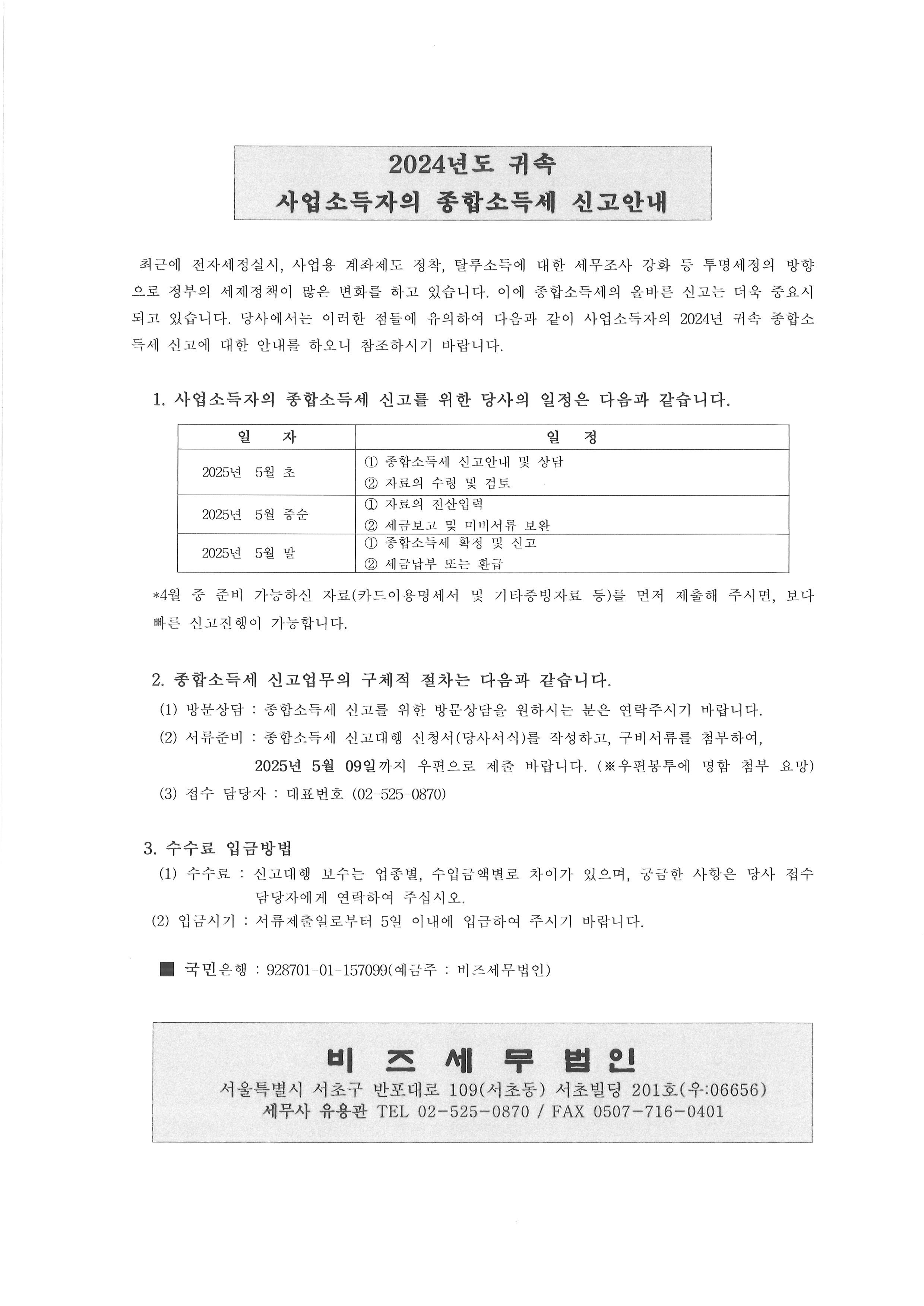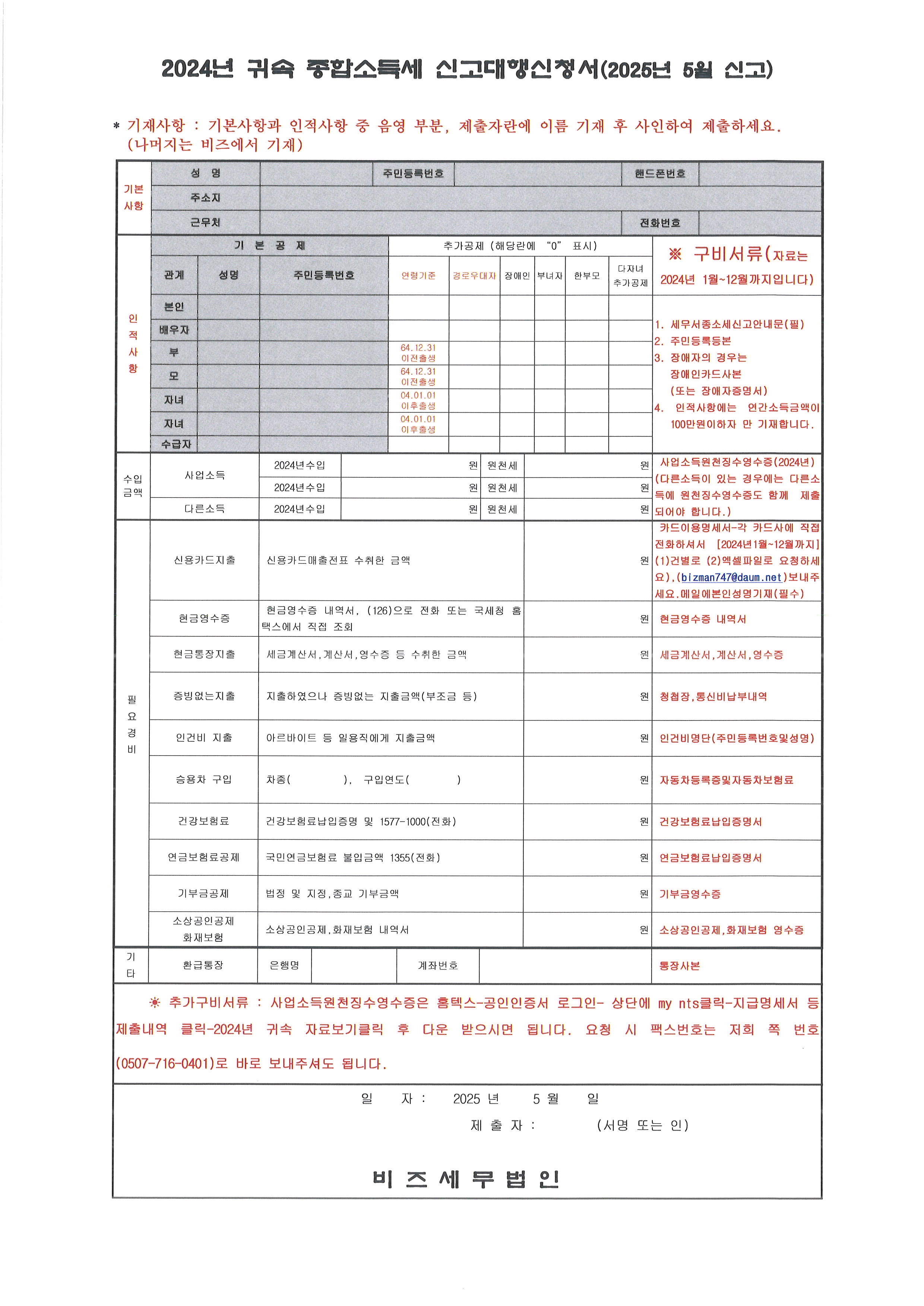 2024년 귀속 종합소득세 신청서와 안내문을 첨부하여 보내드립니다.