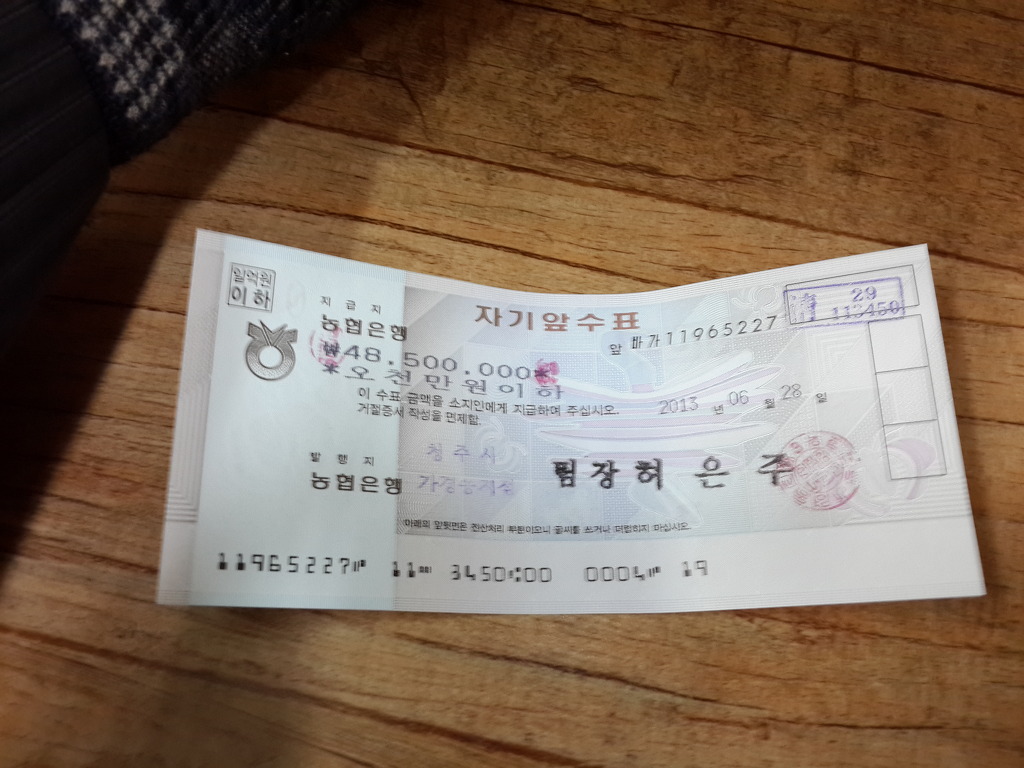 오천만원 수표입니다 작성자곰~팅이!|작성시간13.06.28|조회수829 목록 댓글 1 글자크기 작게가 글자크기 크게가 눈으로만 보았네요 다음검색 현재 게시글 추가 기능 열기 북마크 공유하기 신고 센터로 신고 댓글 댓글 1 댓글쓰기 댓글 리스트 작성자백승헌 | 작성시간 14.07.02 낱장이라 그런지후덜덜함이 좀 덜한네요근데 만지는건 좀 부담스러울 것 같아요 댓글 전체보기