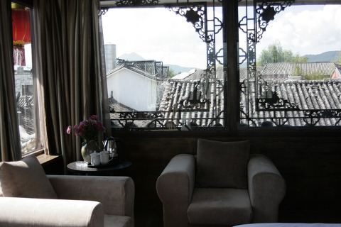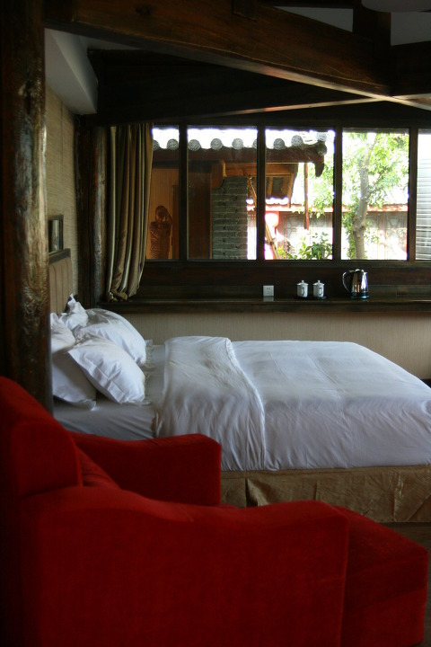 안락한 쇼파에서 커피한잔을 하시면서, 맑은 리장고성의 아침을 맞는 침대위에서도