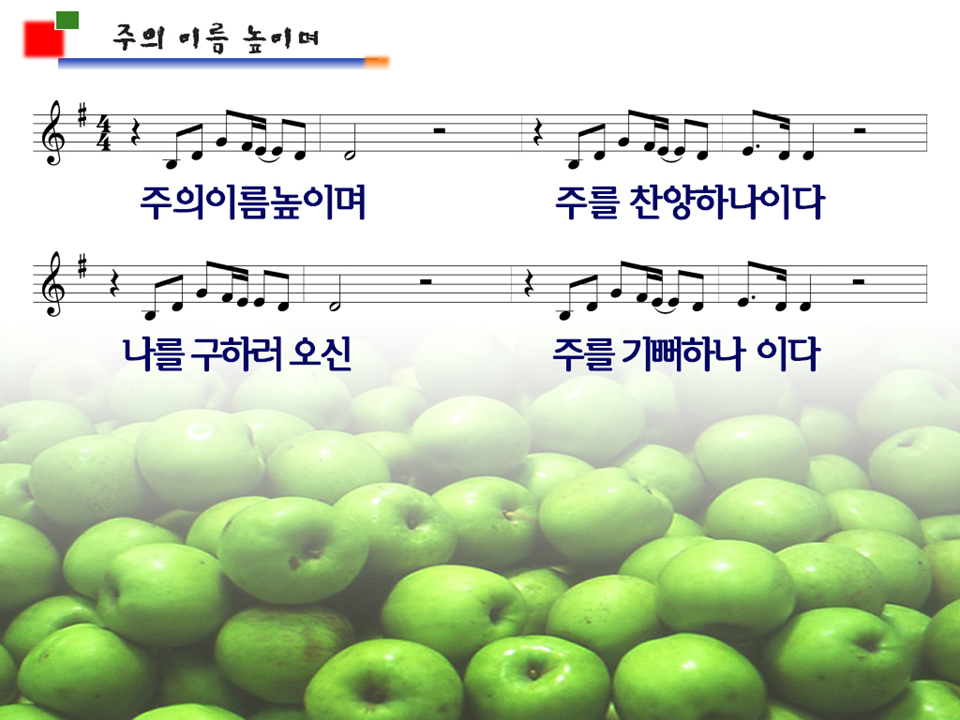 [스크랩] 주의 이름 높이며 파워포인트 PPT 악보 작성자쌤쏘|작성시간11.03.19|조회수484 목록 댓글 0 글자크기 작게가 글자크기 크게가 주의이름높이며-1009.ppt 주의이름높이며 파워포인트 PPT 악보 첨부파일첨부된 파일이 2개 있습니다. png 파일 주의이름높이며-1009.png 다운로드 ppt 파일 주의이름높이며-1009.ppt 다운로드 다음검색 스크랩 원문 : 오직 주만 현재 게시글 추가 기능 열기 북마크 공유하기 신고 센터로 신고 댓글 댓글 0 댓글쓰기 답글쓰기 댓글 리스트