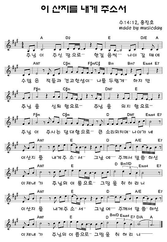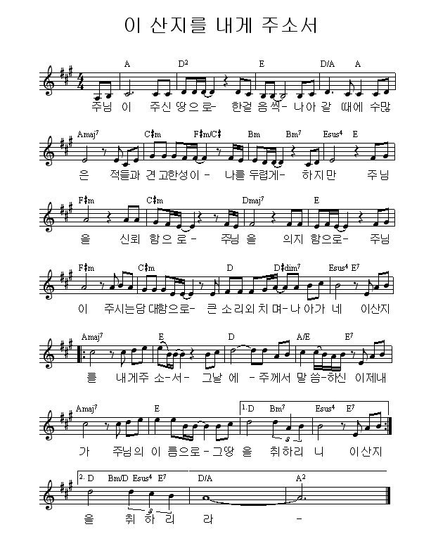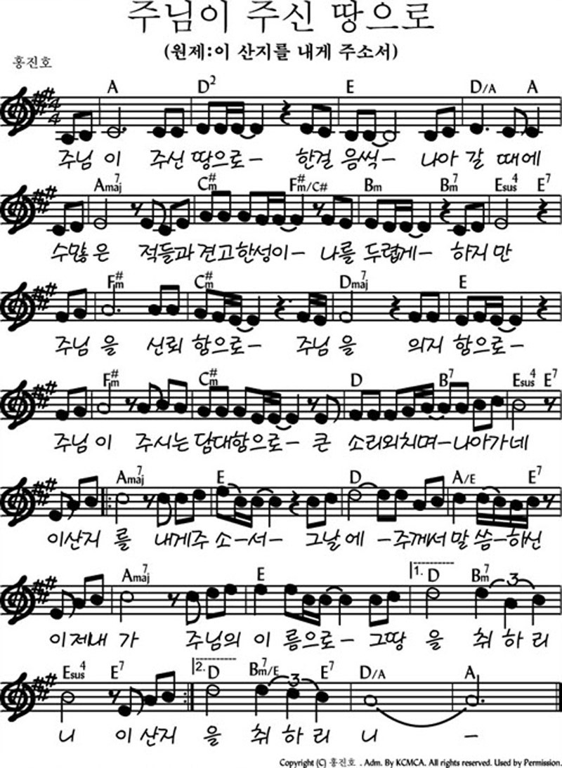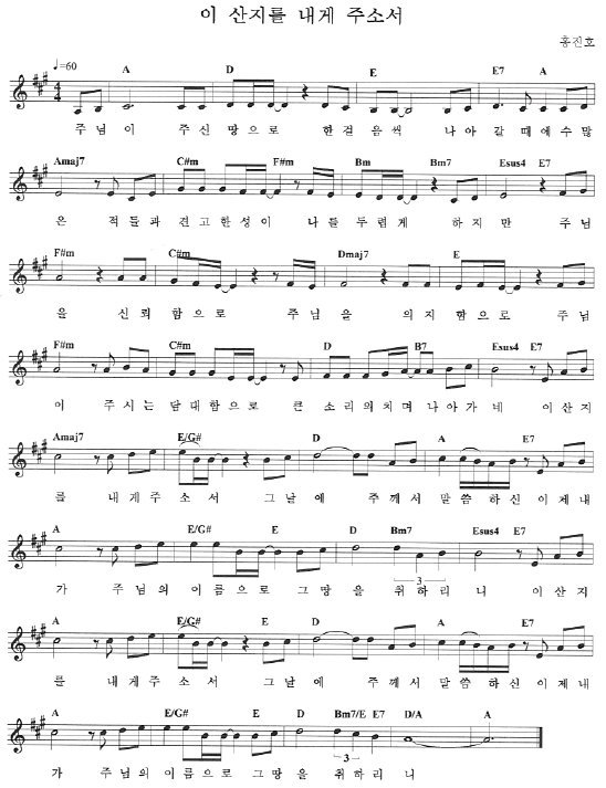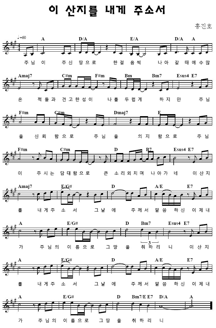 이산지를내게주소서 / 주님이주신땅으로 CCM악보 [홍진호 작사, 홍진호 작곡]