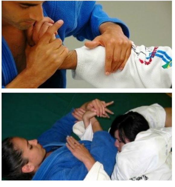 앵클락을걸고 안쪽으로 돌며 꺾기